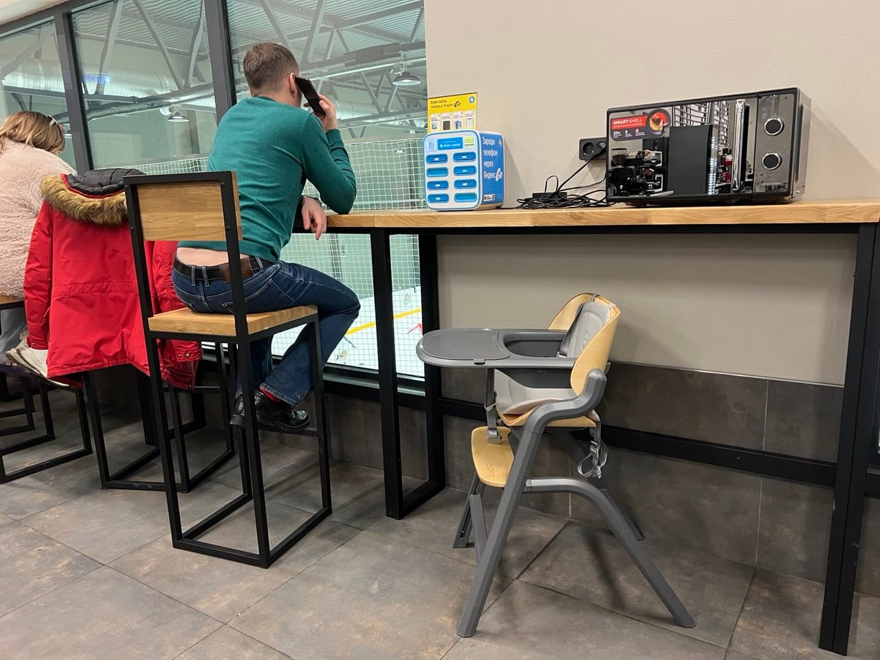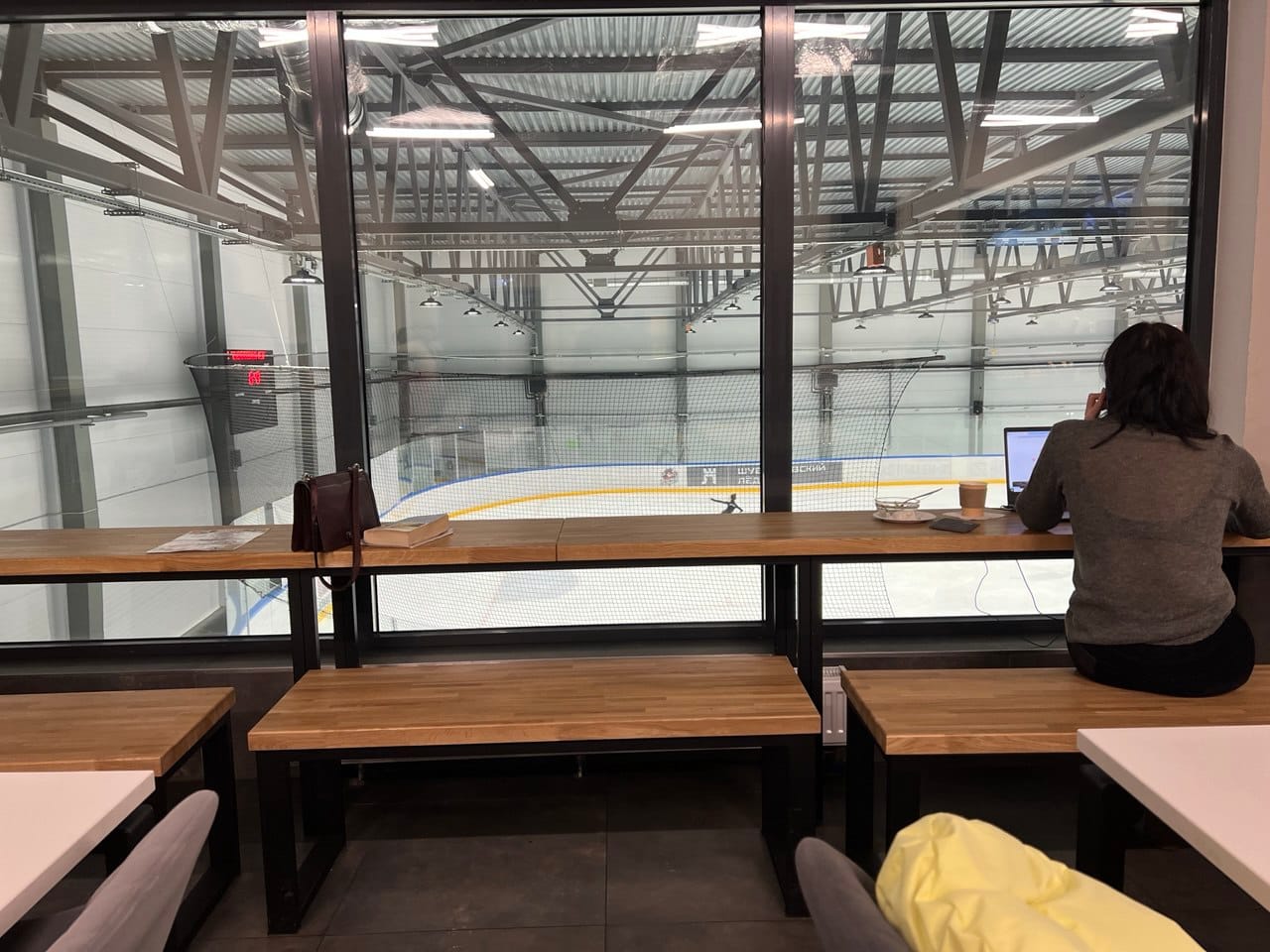 Пока юные спортсмены на льду, у гостей есть время поработать за ноутбуком. Разрядился телефон? Пока ваш гаджет на зарядке, зарядитесь энергией с чашкой бодрящего кофе.