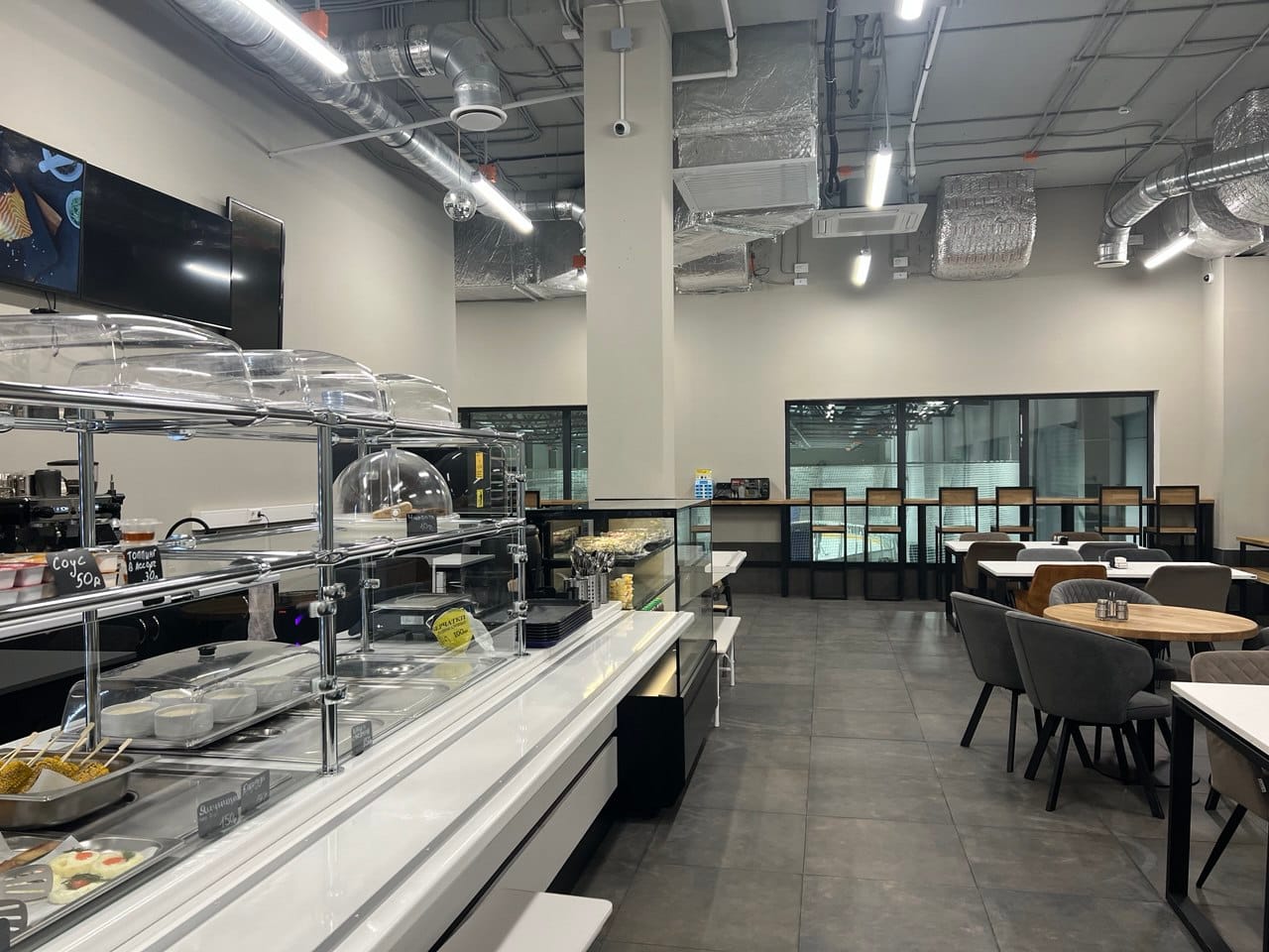 С 12:00 до 16:00 в кафе можно заказать полноценный комплексный обед (салат, горячее и суп). Обед можно заказать как с супом, так и без. Актуальное меню комплексного обеда регулярно обновляется на вывеске внутри кафе.